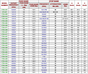 Coaxial Harmonic Absorptive Filter Table